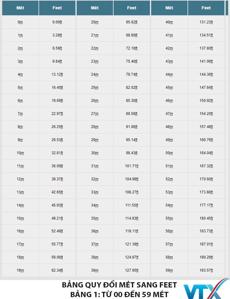 • Bảng quy đổi Feet sang Mét và ngược lại12297 lượt xem