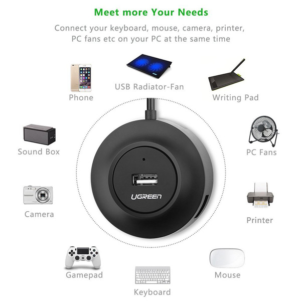 HUB USB 2.0 Ugreen 20277 là thiết bị giúp thêm 4 cổng USB 2.0 từ một cổng usb duy nhất trên máy tính của bạn, dùng để kết nối USB, ổ cứng gắn ngoài, chuột, bàn phím và các thiết bị ngoại vi khác.