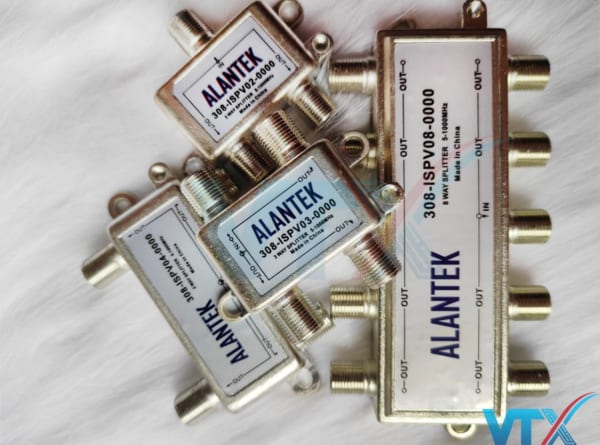 Bộ chia Alantek có các loại 2,3,4,6,8 ngõ ra, dải tần làm việc từ : 5 – 1.000 Mhz. Sản phẩm mã 308-ISPV03-0000 có 3 cổng ra.