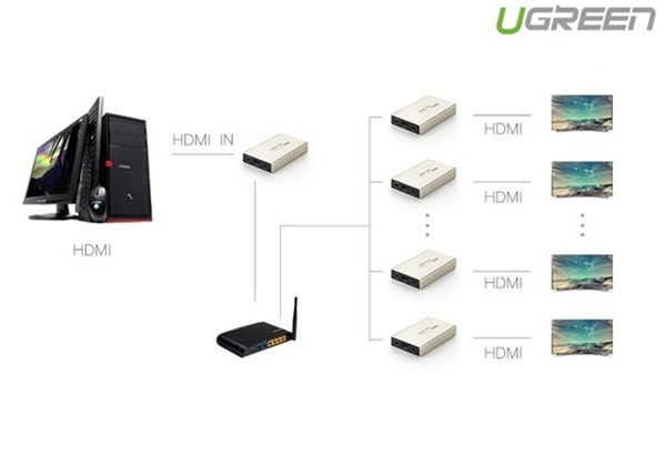 – Bộ chuyển đổi HDMI sang Ethernet Cat 5e/cat6 UG 40280, hoạt động trên mô hình NHẬN-PHÁT qua giao thức TCP-IP Ugreen 40280 là thiết bị phát HDMI (transmiter), và có thể truyền tín hiệu một lần nhiều thiết bị nhận thông qua một router switch mạng (bộ chuyển mạch).