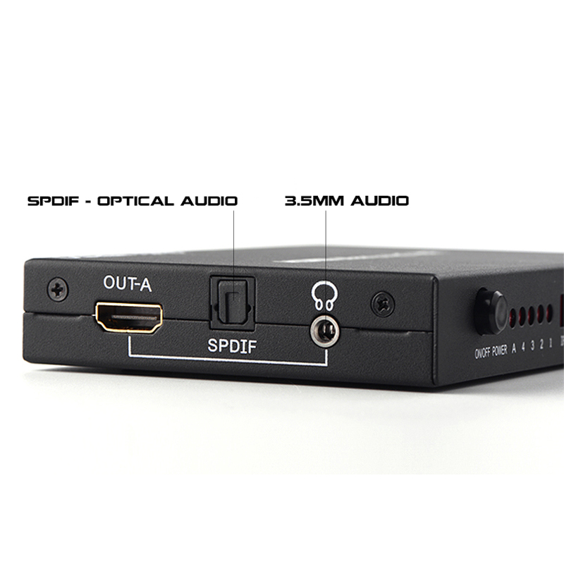 - Thiết bị kết nối dùng chung 2 màn hình cho 4 đầu phát cao cấp Ugreen 40216 còn được tích hợp thêm cổng xuất âm thanh quang (SPDIF) và Audio 3.5mm dùng kết nối thiết bị với loa, amply gắn ngoài mang đến trải nghiệm âm thanh sống động chất lượng cao.