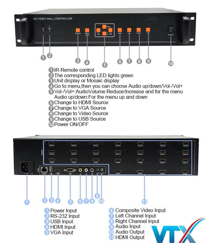- Tín hiệu đầu ra : 25 cổng HDMI