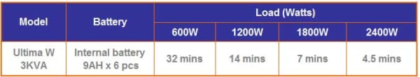 THÔNG SỐ KỸ THUẬT CỦA BỘ LƯU ĐIỆN MARUSON ULT-W3KGMS