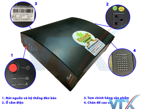 | Mô tả khác | Bộ lưu điện Twinguard được thiết kế lưu điện dự phòng thích hợp cho máy vi tính, máy văn phòng, máy tính tiền trong siêu thị, cùng các thiết bị CNTT, điện tử . Thời gian chuyển mạch tối đa 10 mini giây |