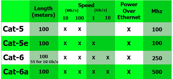 Mặc dù có nhiều loại cáp với tốc độ cao hơn nhiều như Cat 6A nhưng với hệ thống mạng thông dụng, các thiết bị chưa được tối ưu với các chuẩn hiện đại thì ta chỉ cần dùng những loại cáp bình thường như Cat 5 là đủ.