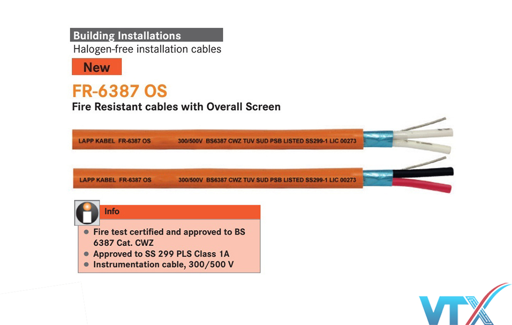 - Áp dụng tiêu chuẩn chống cháy IEC 60331BS 6387Cat.C&Z