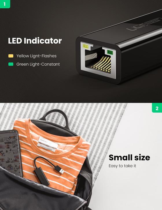 - Cáp chuyển USB sang LAN Ugreen 20256 là giải pháp mở rộng, thêm 1 cổng LAN tốc độ cao Gigabit cho các dòng máy này. Hỗ trợ kết nối và thiết lập một mạng có dây tốc độ cao10/100/1000 Mbps.