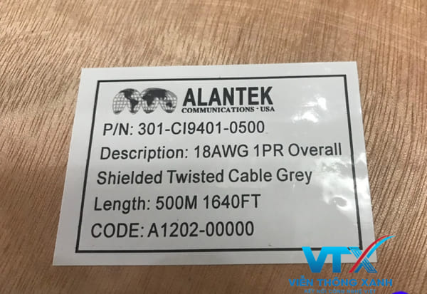 Cảm ơn anh Khánh đã tin tưởng Viễn Thông Xanh! Cáp Alantek 18AWG 1 đôi với cấu trúc đồng mạ thiếc và lớp chống nhiễu tape giúp hệ thống điều khiển vận hành ổn định lâu dài. Chúc anh thi công thuận lợi và thành công