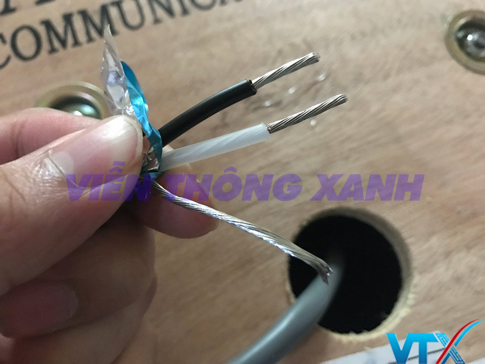 - Lõi cáp được làm bằng đồng mạ thiếc 14 AWG. 2 sợi xoắn tạo thành cặp.