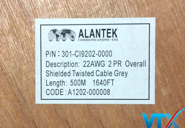 Một số hình ảnh khác của sản phẩm Cáp điều khiển Alantek 20AWG 2 pair | PN : 301-CI9302-0500
