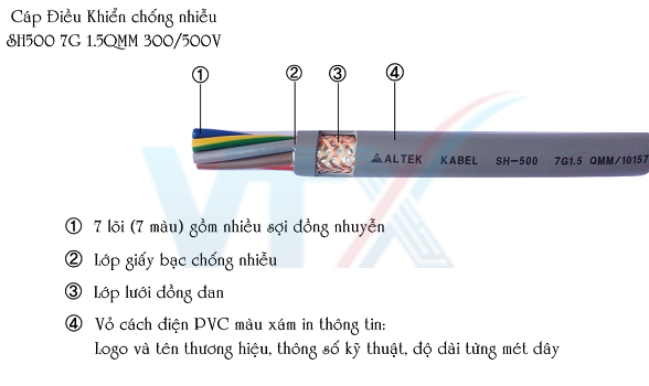 Thông số kỹ thuật của cáp điều khiển chống nhiễu Altek Kabel