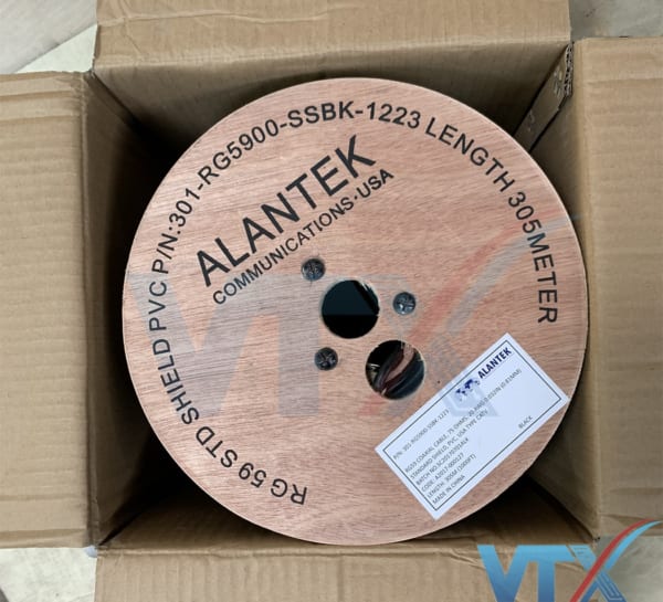 Nếu ai đã từng thường xuyên tìm hiểu về cáp đồng trục Alantek, cáp ăng ten thì chắc hẳn sẽ rất quen thuộc với dây cáp đồng trục Alantek RG59 Không dầu 301-RG5900-SSBK-1223. Cáp cho khả năng truyền dẫn tín hiệu camera quan sát trong thang máy, thường được dùng cho camera analog hay hệ thống truyền hình CATV, MATV, tivi được nhanh chóng, thông suốt và không bị gián đoạn bởi sóng điện từ.