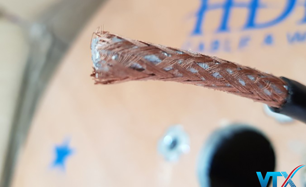 -Vỏ cáp được làm bằng nhựa chất lượng cao có màu đen đặc trưng lớp lưới đồng bên trong được đan dạng lưới đều và ôm chặt quanh phần thân lõi cáp đồng trục