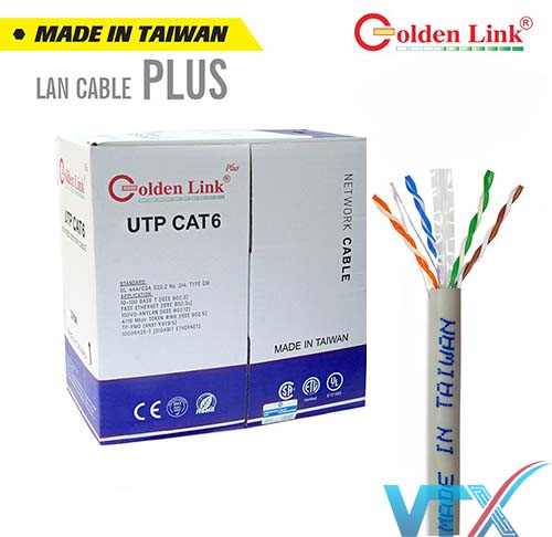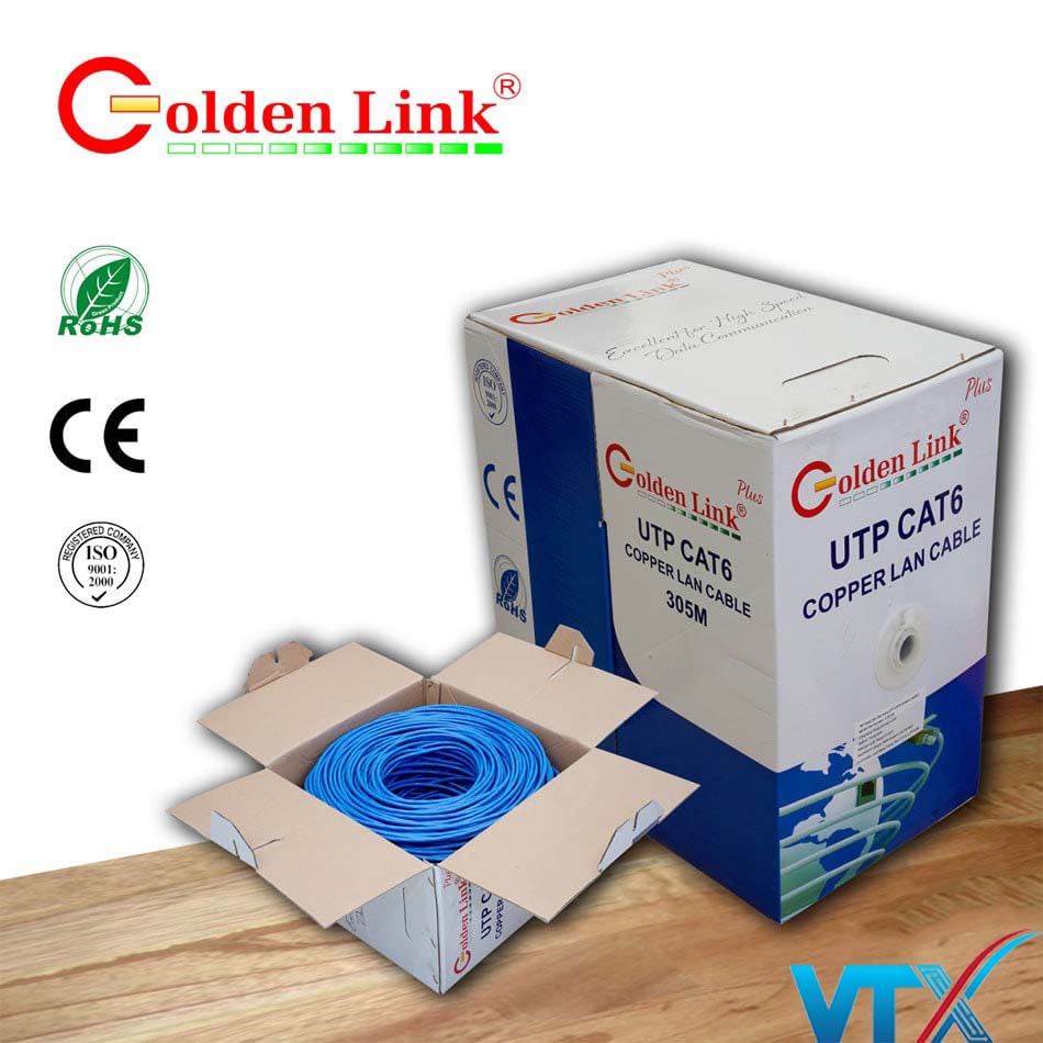 Cáp mạng Golden Link Cat6Plus UTP là dòng sản phẩm chất lượng cao, được sản xuất tại Việt Nam Trên dây truyền công nghệ cao của Nhật Bản. Dây cáp mạng Golden cat6 là sản phẩm cáp mạng Cat6 chuyên dụng cho tòa nhà cao cấp và các phòng game, bootroom cao cấp.