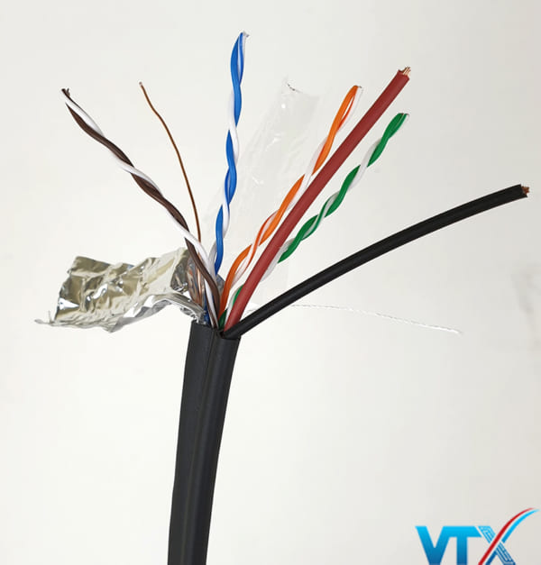 Cáp mạng kèm nguồn Cat5e FTP + 2C là cáp mạng còn có kèm thêm 2 dây nguồn dẫn điện; loại dây này được dùng rất phổ biến trong các hệ thống camera quan sát, camera IP,… rất tiện lợi cho người sử dụng và giảm thiểu tối đa chi phí cho việc thi công.