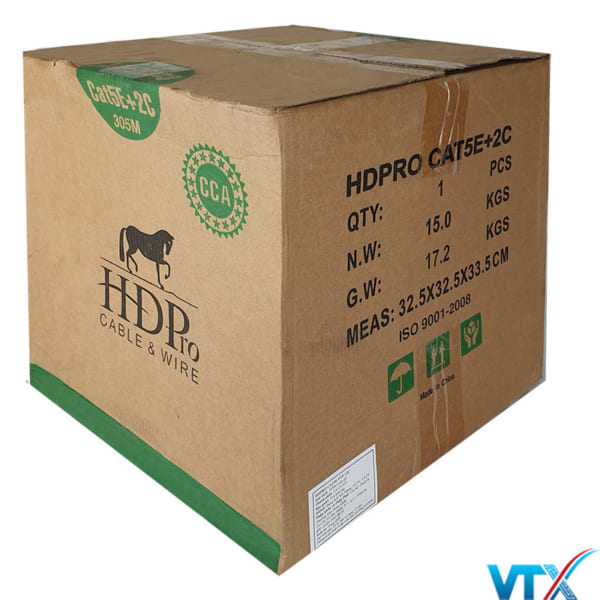 Các sản phẩm của HDpro được sản xuất dựa trên quy trình hiện đại được chuyển giao công nghệ trực tiếp từ Hàn Quốc – Quốc gia có các sản phẩm luôn được đảm bảo về chất lượng đây là thương hiệu chính hãng trực thuộc . Với mô hình nhà máy hiện đại và hệ thống kĩ thuật viên lành nghề, các sản phẩm của HDpro luôn đáp ứng được những tiêu chuẩn khắt khe nhất về chất lượng và đem lại sự hài lòng cao nhất từ phía người tiêu dùng. Cáp mạng kèm nguồn Cat5e FTP + 2C CCA là cáp mạng 8 sợi hợp kim đồng bọc bạc chống nhiễu + 1 sợi đồng gia cường, 1 dây dù trợ lực kèm 2 dây nguồn dẫn điện; loại dây này được dùng rất phổ biến trong các hệ thống camera quan sát, camera IP,… rất tiện lợi cho người sử dụng và giảm thiểu tối đa chi phí cho việc thi công