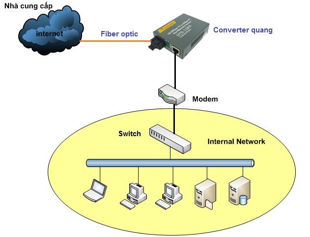 Kết nối mạng internet cáp quang sử dụng converter quang kết hợp modem