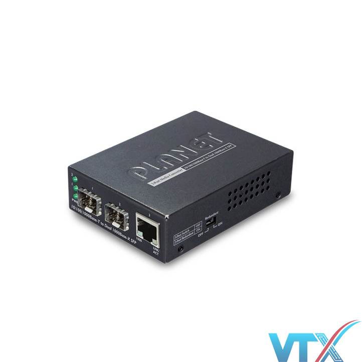 Converter quang Planet GT-1205A được trang bị 1 cổng 10/100/1000Base-T (RJ45) + 2 cổng 1000FX (SFP), chế độ chuyển đổi 3 cổng cho phép GT-1205A hoạt động ở hiệu suất tối ưu và có thể giảm tổn thất gói ở mức tối thiểu với tính năng điều khiển lưu lượng (Full-duplex) và áp suất ngược (Half-Duplex) của IEEE 802.3x.