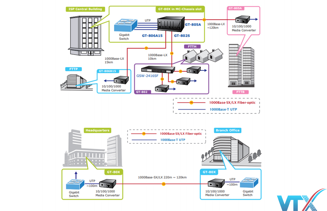 Với hiệu suất truyền tải dữ liệu tốc độ cao và cài đặt dễ dàng, GT-802S có thể xây dựng giải pháp mạng ISP của FTTH (Fiber to the Home) hoặc FTTC (Fiber to the Curb) cho các ISP và FTTB (Fiber to the Building), cho môi trường mạng văn phòng nhỏ của các doanh nghiệp.