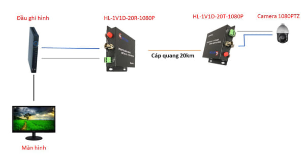 - Bộ chuyển Video sang quang HL-1V1D-20T/R-1080P