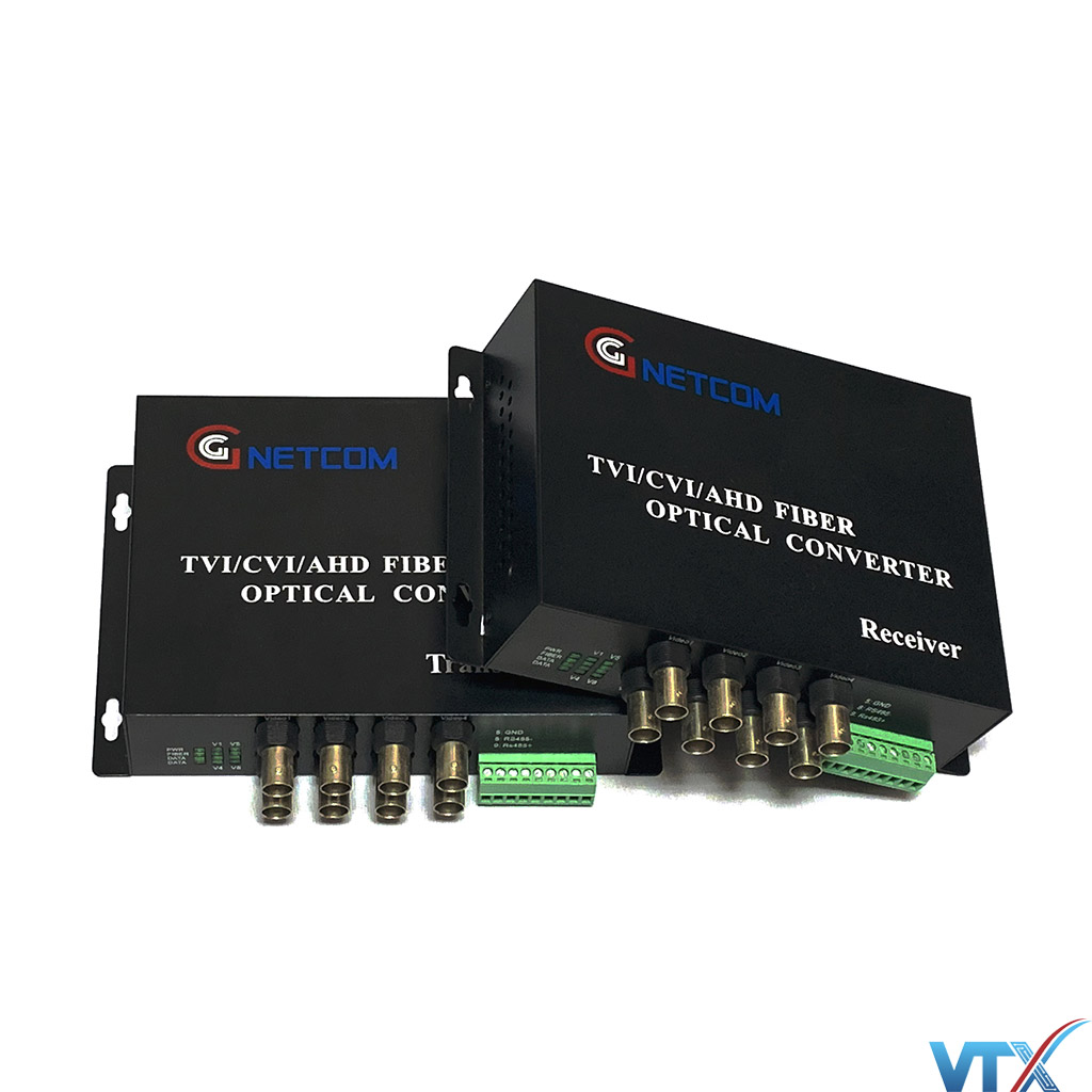 Bộ chuyển đổi Video sang quang- Converter video quang GNETCOM có PTZ/RS485. là thiết bị chuyển đổi tín hiệu video chuẩn HDTVI, HDCVI, AHD độ phân giải là 720p sang tín hiệu cáp quang và ngược lại. Nó tương thích hoàn toàn với các sản phẩm camera quan sát sử dụng chuẩn HDTVI, HDCVI, AHD, trên thị trường như HIKVISION, DAHUA, D-MAX,…