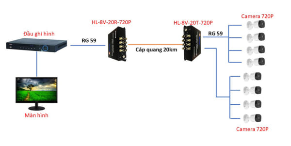 - Bộ thu phát video quang, converter quang HL-8V-20T/R-720P