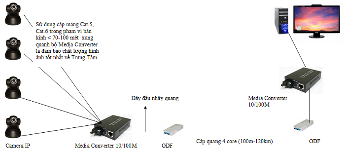 Đối với hệ thống camera Analog thì khi lắp đặt cần kéo dây tín hiệu là dây cáp đồng trục từ camera tới đầu ghi hình. Nhưng vấn đề phát sinh là cáp đồng trục truyền tín hiệu điện, độ suy hao lớn và không thể truyền xa đến vài trăm mét, trong khi nhu cầu của con người ngày càng cao, nhiều tình huống phát sinh như khi ta muốn lắp camera ở khu vực nhà xưởng nhưng lại phải đặt đầu ghi hình ở phòng điều khiển hay văn phòng, rồi hệ thống camera giao thông, camera lắp ở các ngã tư hoặc các tuyến phố đông đúc nhưng hệ thống đầu thu hình phải nằm ở phòng điều khiển trung tâm thành phố…. chính vì đó mà giải pháp lắp đặt camera sử dụng đường truyền cáp quang ra đời. Với giải pháp này người ta có thể truyền tín hiệu từ camera quan sát đi xa hàng vài chục tới vài trăm kilomet đến các khu vực điều khiển trung tâm