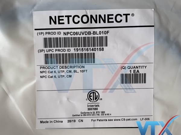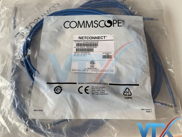 Cáp nhảy mạng Commscope NPC06UVDB-BL010F cấu thành từ những đầu cấm RJ45 với phần tiếp xúc được mạ 50-micron vàng, và được bấm theo bảng màu chuẩn T568A, hay T568B.