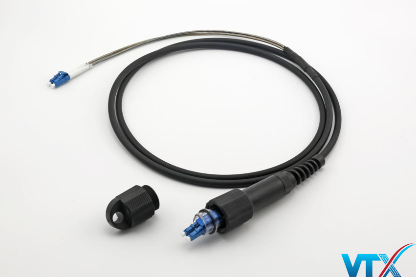 - Chống nước trên toàn bộ thân dây nhảy, cuối mỗi đấu cáp là các chuẩn kết nối LC hoặc SC.