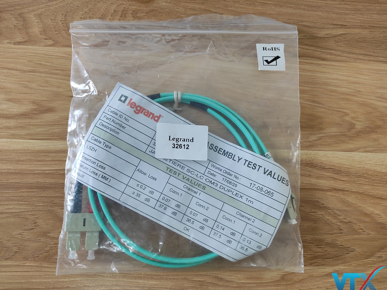 Thông số kỹ thuật dây nhảy quang OM3 Multi Mode SC-LC Duplex Legrand 1m