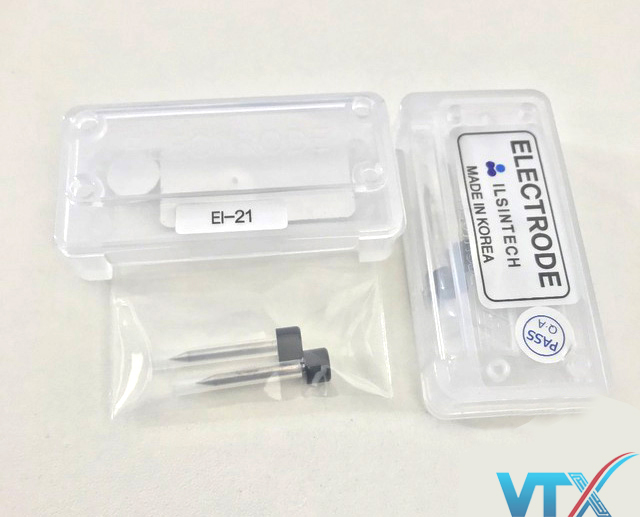 Điện cực máy hàn Ilsintech Swift K7 K9 (Electrode) hay cặp kim phóng, là vật tư tiêu hao trong quá trình sử dụng máy hàn cáp quang. Dòng điện cao áp sẽ thông qua hai điện cực phóng đốt cháy 2 đầu sợi quang và hàn chúng lại với nhau. Sau khoảng 3000 đến 4000 lần phóng, công suất phóng hồ quang không còn đạt tiêu chuẩn, dẫn tới mối hàn không đạt yêu cầu, suy hao cao. Do đó, chúng ta cần thay thế cặp kim phóng mới để đảm bảo chất lượng mối hàn. Sản phẩm sử dụng cho máy hàn quang Swift K7, K9.