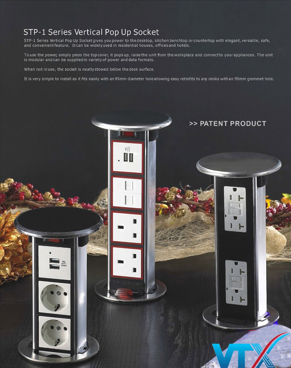 Ổ cắm âm bàn STP-1S được thiết kế đặc biết với khả năng đóng mở vô cùng lạ mặt nhưng vẫn đảm bảo thuận tiện.