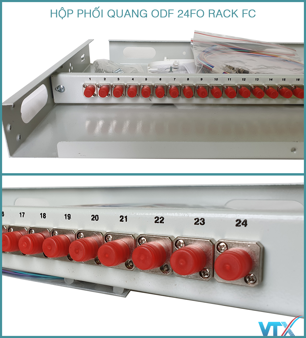 • Hộp phối quang ODF 24 FO lắp rack đầy đủ phụ kiện