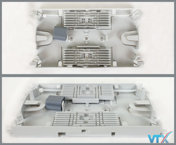 - Khay hàn quang làm bằng nhựa ABS chất lượng cao, chống lão hóa– Kích thước lớn, cho phép cuộn dự trữ dây quang 1200m với bán kính uốn >30mm