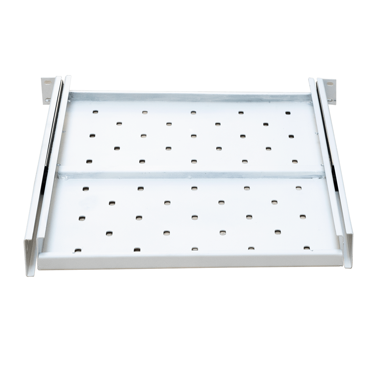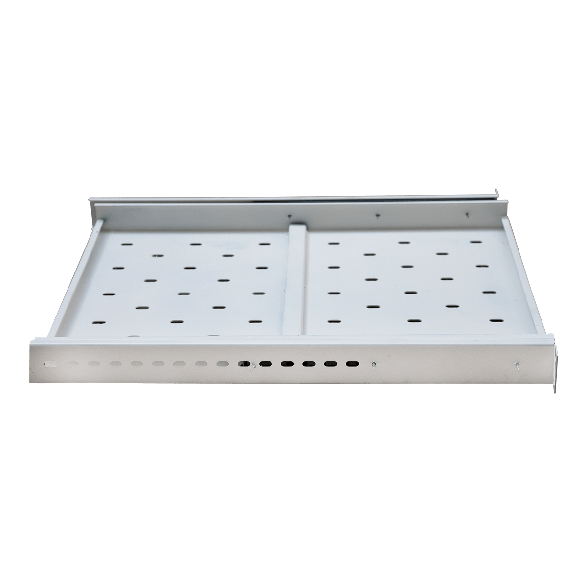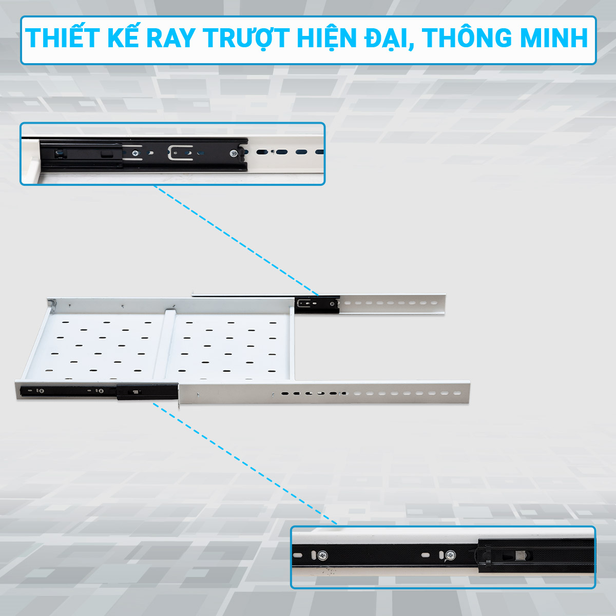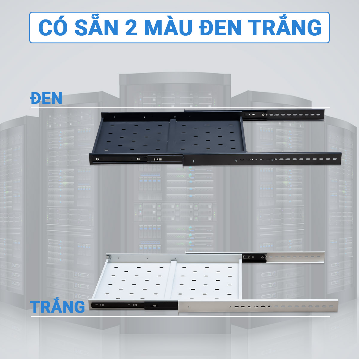 Bề mặt của khay được phủ sơn tĩnh điện mịn, giúp ngăn ngừa oxy hóa, chống ăn mòn và mang lại lớp hoàn thiện mịn màng, tạo nên vẻ ngoài thẩm mỹ và chuyên nghiệp. Khay có hai lựa chọn màu sắc là đen hoặc trắng, phù hợp với nhiều kiểu tủ rack khác nhau, tạo sự đồng bộ cho hệ thống thiết bị.