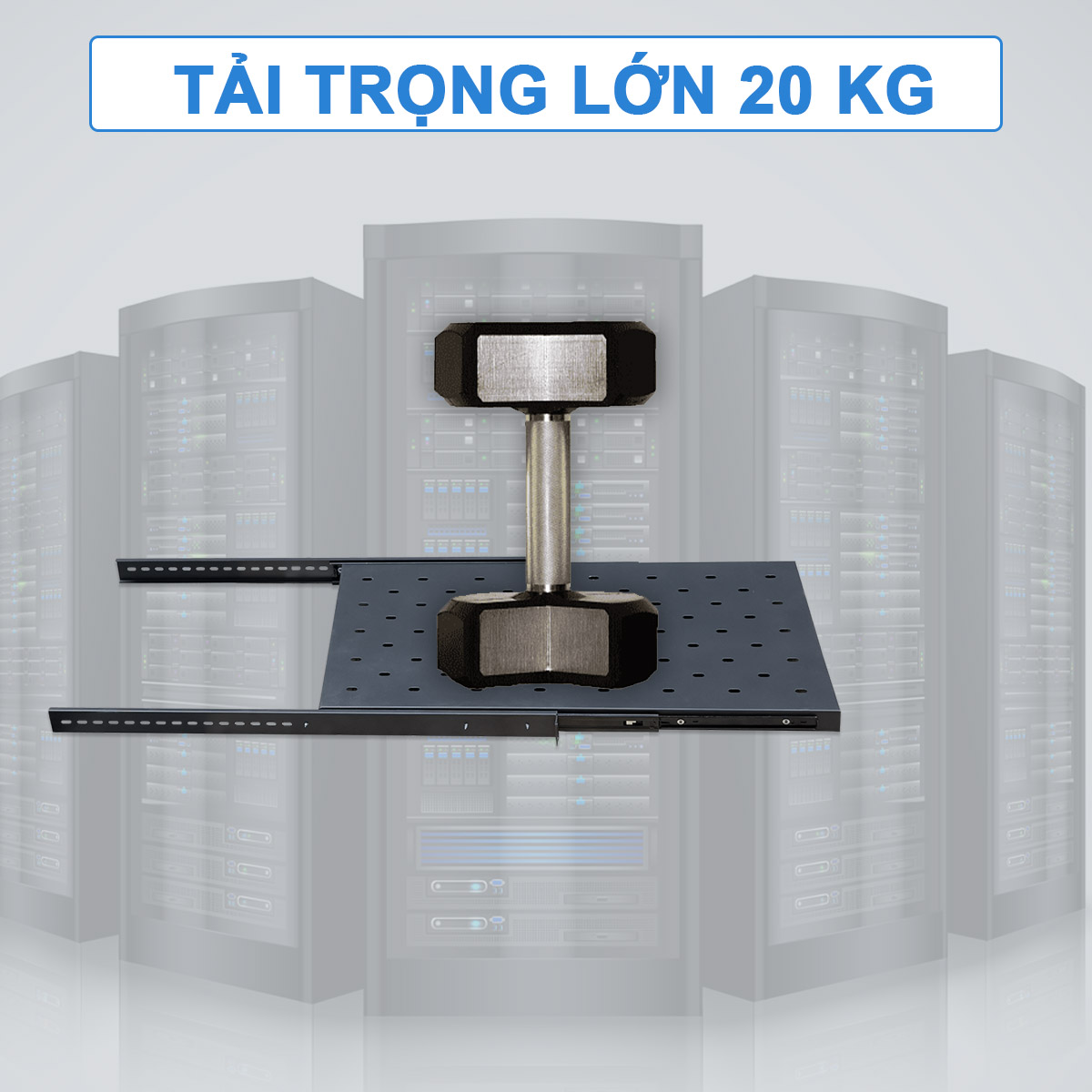 Khay trượt 1U D800 Maxtel – MTAR-KT1U800 (W/B) có khả năng chịu tải lên đến 20kg, phù hợp để lắp đặt các thiết bị có trọng lượng vừa phải, đảm bảo sự chắc chắn và an toàn. Kích thước của khay được thiết kế chuẩn xác để phù hợp với tủ rack có độ sâu 800mm, cung cấp không gian đủ rộng cho việc đặt các thiết bị bên trong.
