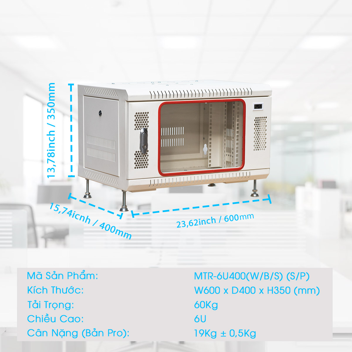 MTR-6U400(W/B/S) (S/P) không chỉ bảo vệ hiệu quả các thiết bị mạng mà còn giúp duy trì không gian làm việc gọn gàng, dễ dàng quản lý.