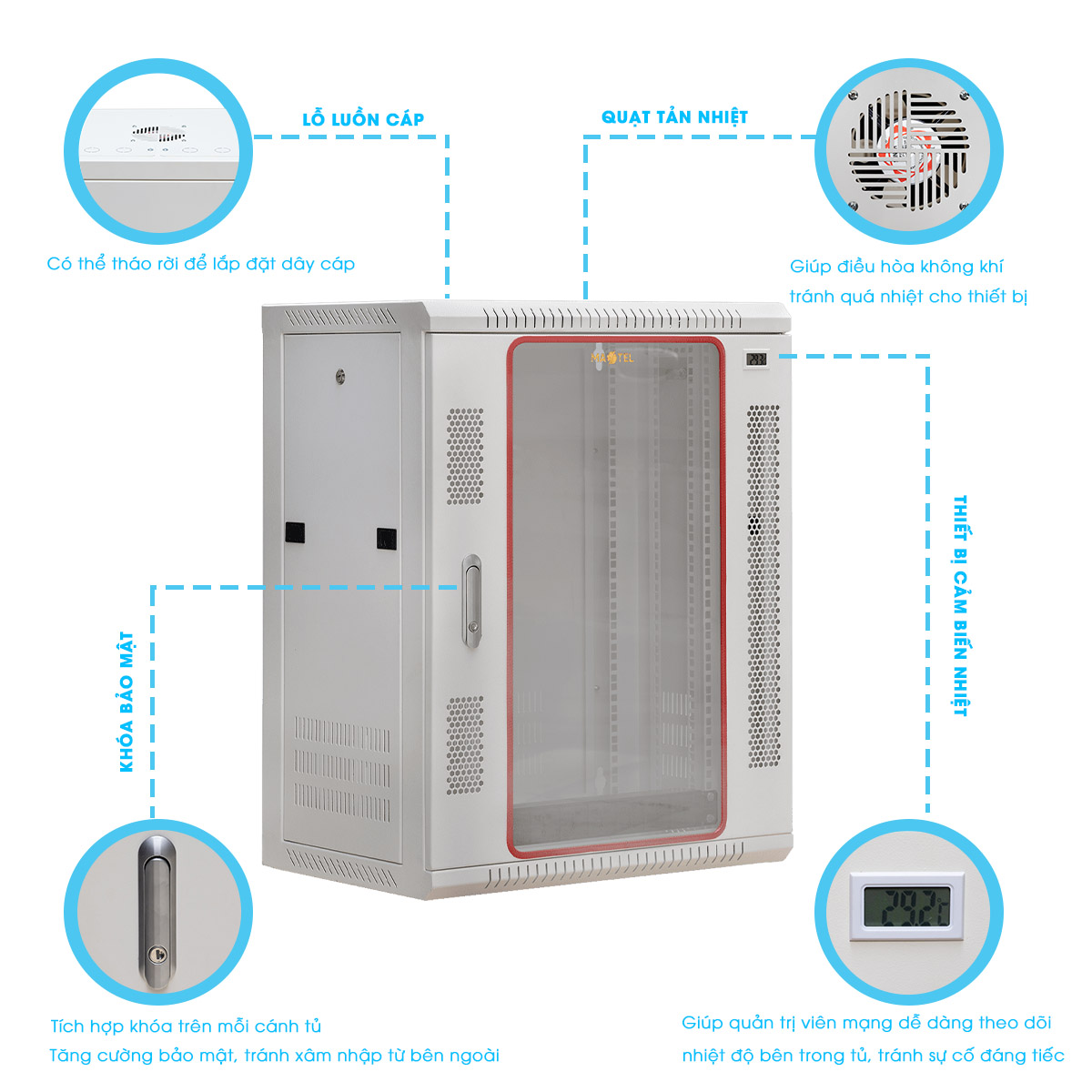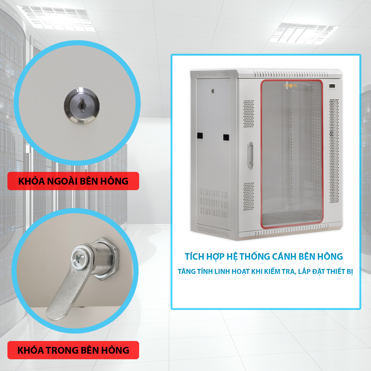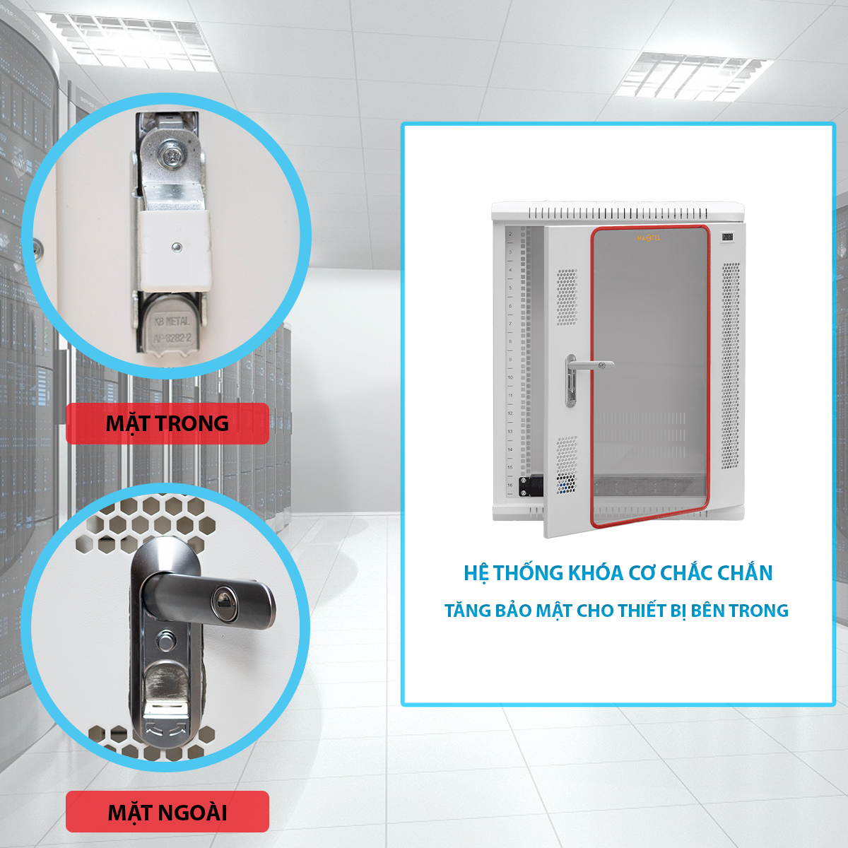 • Với khả năng tải lên đến 110kg, tủ có thể chứa nhiều thiết bị mạng mà vẫn đảm bảo độ ổn định và an toàn. Đặc biệt, sản phẩm còn hợp khóa cơ sở, giúp bảo vệ các thiết bị bên ngoài quyền truy cập trái phép, đảm bảo tính bảo mật cao.