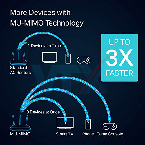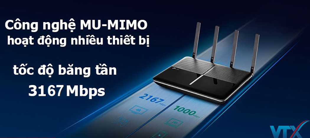 - Nhờ vào công nghệ MU-MIMO sẽ gia tăng công suất và hiệu suất router của bạn. Cho phép nó xử lý nhiều hoạt động Wi-Fi hơn.