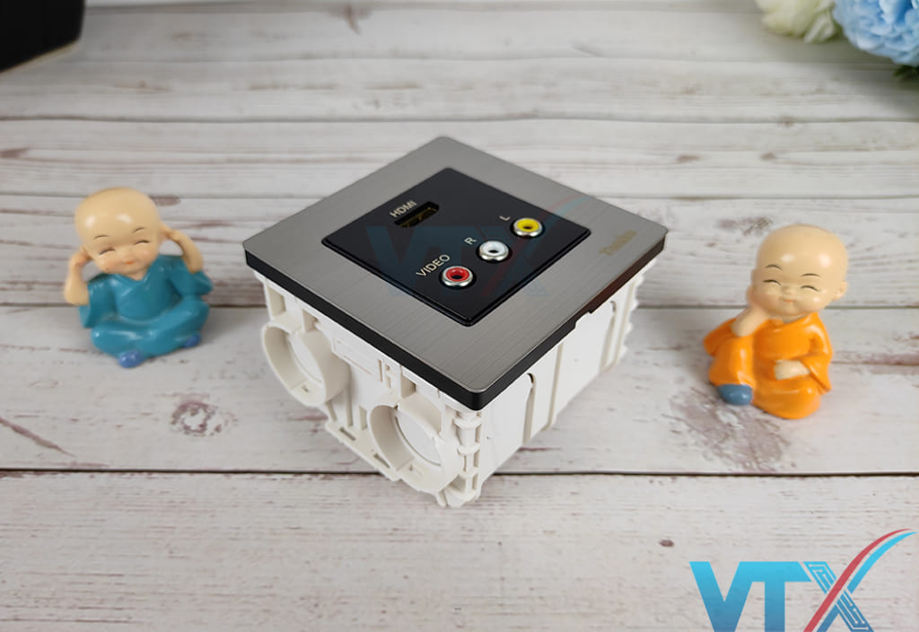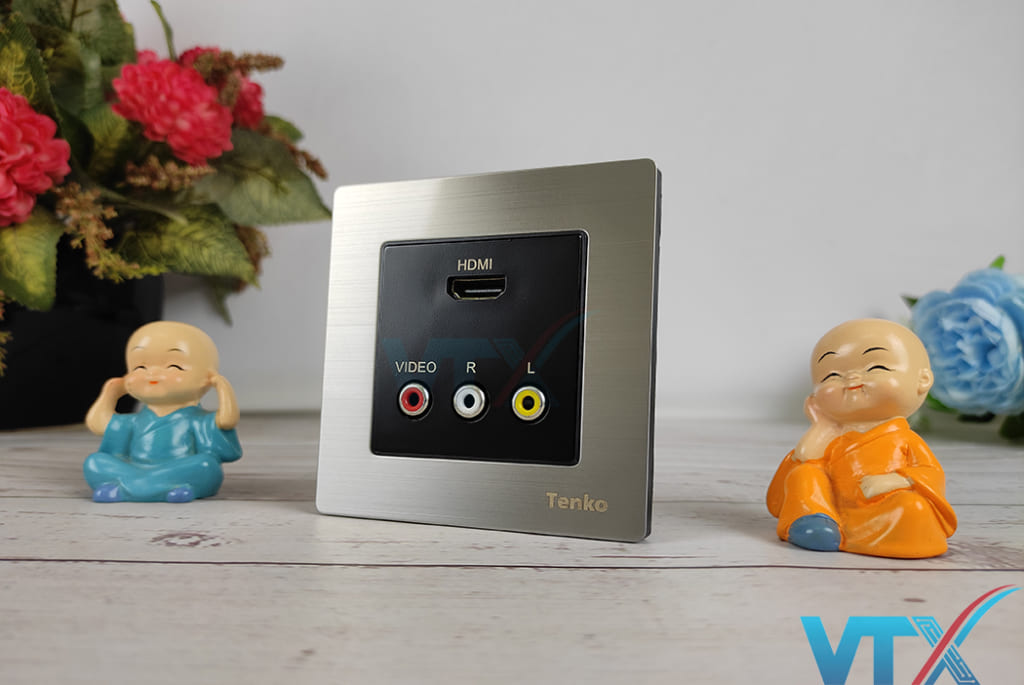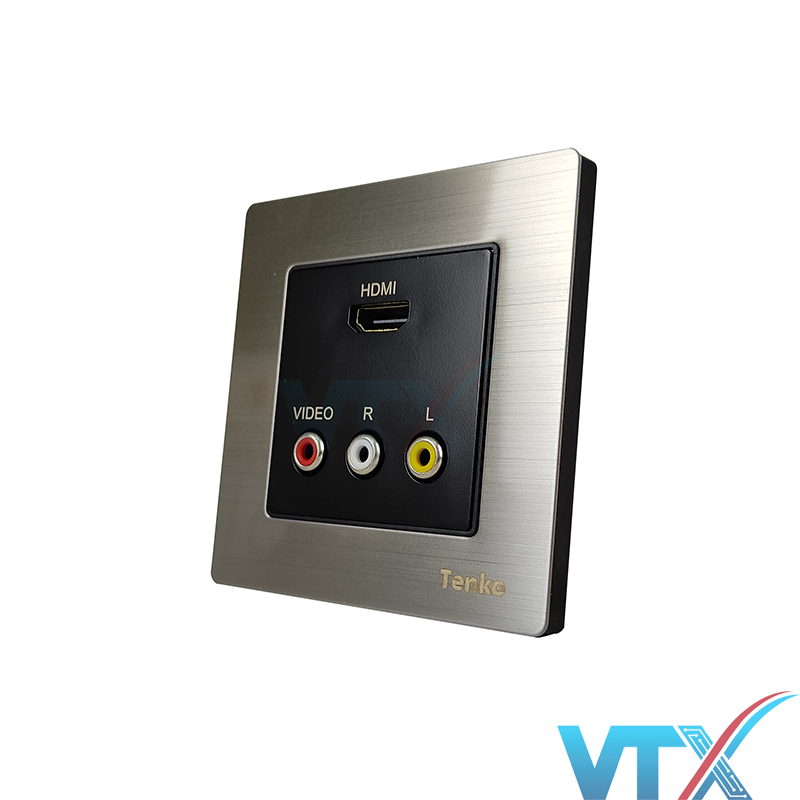 Ổ âm tường AV+HDMI chính hãng Tenko bao gồm 1 đầu cắm chuẩn HDMI và 1 cổng AV (L Audio, R Audio, Video) thường được sử với những không gian hiện đại, châu âu…