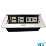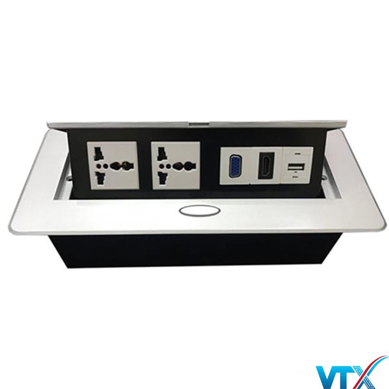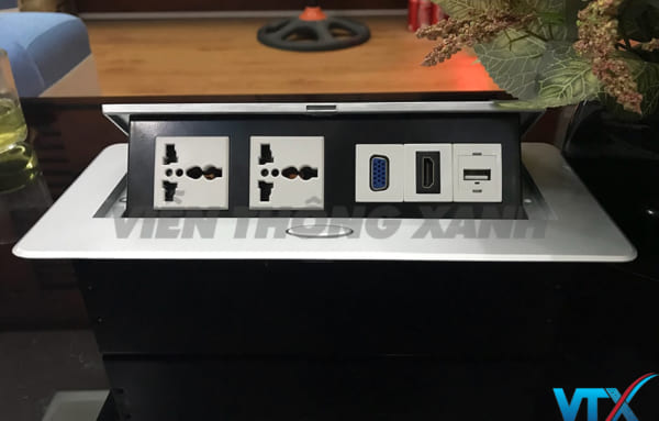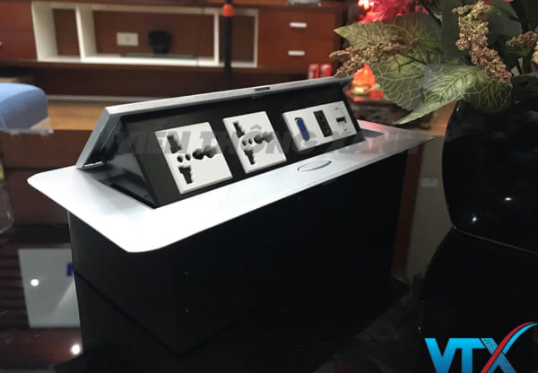 Ổ cắm âm bàn làm bằng thép sơn tĩnh điện chống rỉ,bên hông thiết kế các lỗ chờ để luồn dây khi đi dây trong gầm bàn nên rất dễ dàng khi thi công.