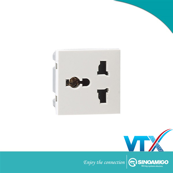Hạt ổ cắm 3 chấu đa năng SINO AMIGO thiết kế chuẩn đa năng phù hợp với nhiều chuẩn phích cắm như chuẩn US, UK, chuẩn Úc…