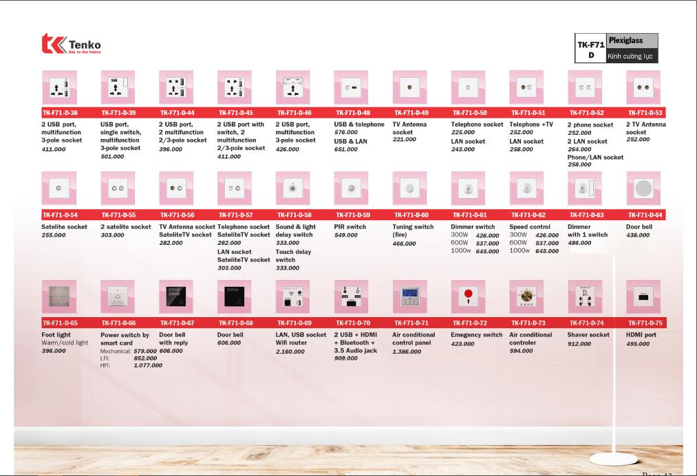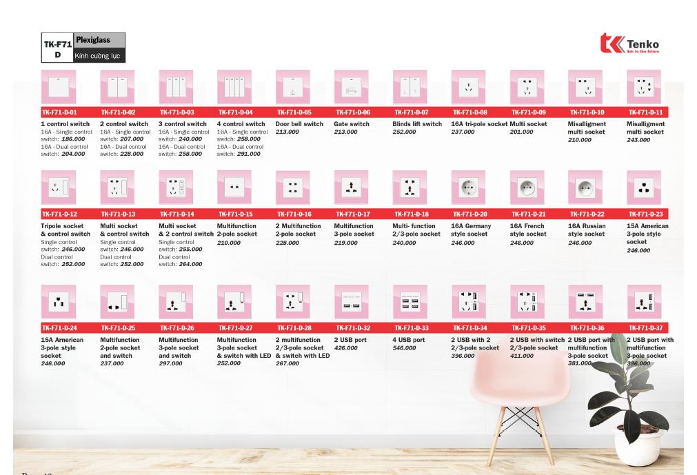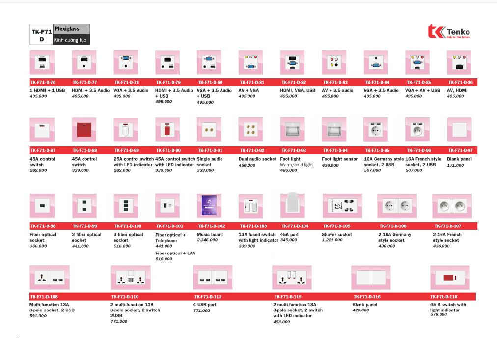Ổ cắm điện cao cấp Tenko TK-F71-D-18 còn có rất nhiều màu sắc cho quý vị có thể lựa chọn để phù hợp với không gian lắp đặt như