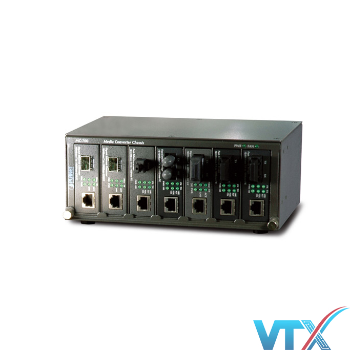 MC-700 là một giải pháp linh hoạt có thể mở rộng để cài đặt bộ chuyển đổi phương tiện. Có một nguồn cung cấp năng lượng độc lập trong mỗi khe của MC-700. Do đó, trong quá trình hoạt động có thể tráo đổi bất kỳ bộ chuyển đổi nào mà không gây ảnh hưởng cho các bộ chuyển đổi còn lại. Các bộ chuyển đổi phương tiện truyền thông có thể được “Plug and play” bất cứ lúc nào. Mỗi khoang của MC-700 có thể được tạo thành với bất kỳ loạt bộ chuyển đổi phương tiện nào của PLANET, dòng FT, GT, VC-20x và ICS, để cung cấp chuyển đổi phương tiện giữa cáp quang, dây điện thoại và nối tiếp sang dây đồng.