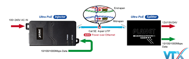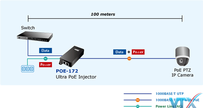 Tương thích ngược với cả hai tiêu chuẩn PoE 802.3af và 802.3at, POE-172 cho phép người dùng triển khai linh hoạt các thiết bị tiêu chuẩn và công suất cao để truyền dữ liệu và năng lượng cùng lúc thông qua một cáp Ethernet lên đến 100 mét. POE-172 hỗ trợ camera IP bảo mật và AP không dây khỏi các hạn chế về vị trí ổ cắm điện và hệ thống dây điện AC bổ sung. Do đó, giảm cáp và loại bỏ sự cần thiết của các ổ cắm điện trên tường, trần nhà và rút ngắn thời gian lắp đặt.