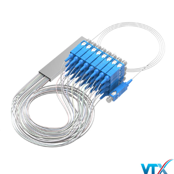 Bộ chia quang 1×32 (Optical splitter PLC 1:32) PLC Mini type, Input: SC/UPC, 1.5m, 0.9mm – Output: SC/UPC, 0.6m, 0.9mm hay còn gọi là bộ chia cáp quang Splitter, Là một trong những thiết bị quan trọng nhất trong hệ thống mạng cáp quang thụ động (PON) – cho phép tín hiệu trên sợi quang được phân phối giữa hai hoặc nhiều sợi.Vì các bộ chia quang này không có điện từ và không đòi hỏi điện năng,chúng được sử dụng rộng rãi trong các mạng cáp quang.