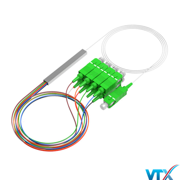 Bộ chia quang 1×8 (Optical splitter PLC 1:8) PLC Mini type, Input: SC/UPC, 1.5m, 0.9mm – Output: SC/UPC, 0.6m, 0.9mm hay còn gọi là bộ chia cáp quang Splitter, Là một trong những thiết bị quan trọng nhất trong hệ thống mạng cáp quang thụ động (PON) – cho phép tín hiệu trên sợi quang được phân phối giữa hai hoặc nhiều sợi.Vì các bộ chia quang này không có điện từ và không đòi hỏi điện năng,chúng được sử dụng rộng rãi trong các mạng cáp quang.