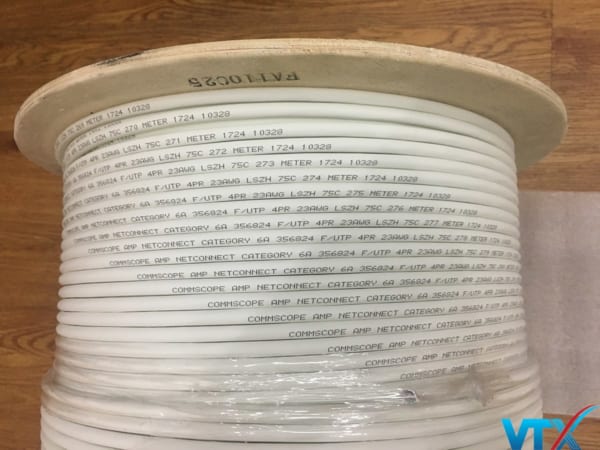 Trên dây mạng Cat6a Commscope có in thông tin theo từng mét như sau: Commscope AMP Netconnect Category 6A 356824 F/UTP 4PR 23AWG LSZH 75C xxx Meter 1724 1 0328
