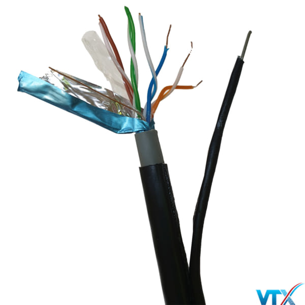 Lớp vỏ PVC chất lượng cao có tuổi thọ cao khi sử dụng ngoài môi trường và 1 cọng kim loại đi kèm có tác dụng chịu lực giúp dây cáp ngoài trời có thể kéo dây với khoảng cách xa hơn.