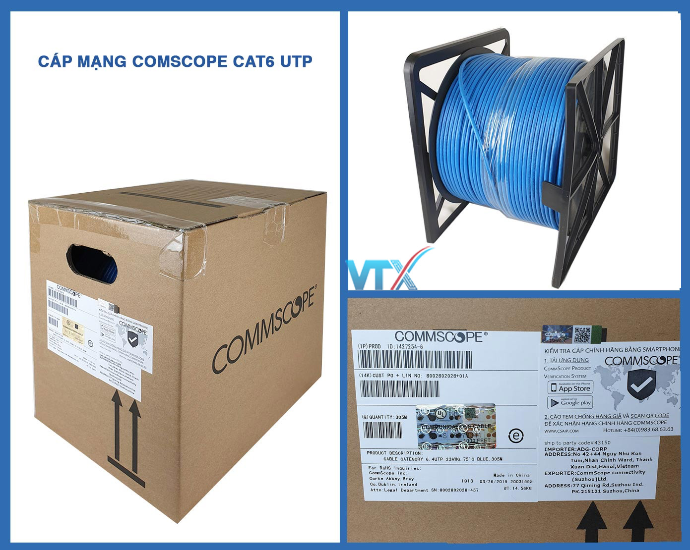 Cáp mạng Commscope Cat6 UTP (hay với người dùng Việt Nam vẫn quen thuộc với cái tên Cáp mạng AMP Cat6) là là dây cáp kết nối mạng giữa các thiết bị điện tử tạo nên một mang lưới mạng với tốc độ truyển ổn định, sử dụng lâu dài và hiệu quả cực tốt. Cáp mạng Commscope có vòng đời dài nhất cung cấp một hệ thống mạng chuyên nghiệp và được bảo hành lên tới 25 năm cho toàn bộ hệ thống.